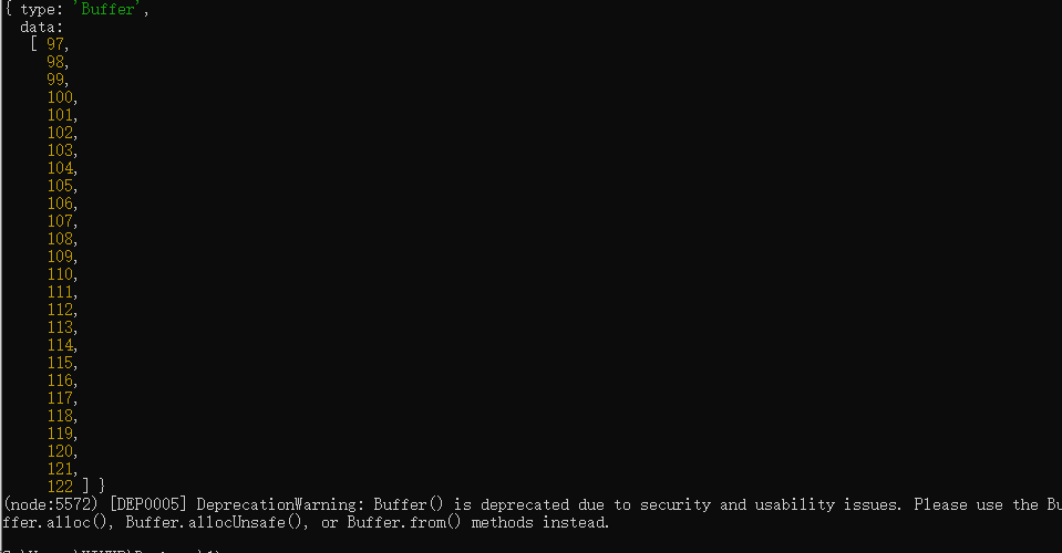 buffer类用来创建专门存放二进制数据的缓冲区域,因此输出只有二进制