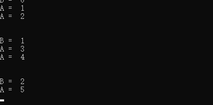 sum.on('eventB', () => { console.log('\n'); console.log('B = ', B); B = B + 1;