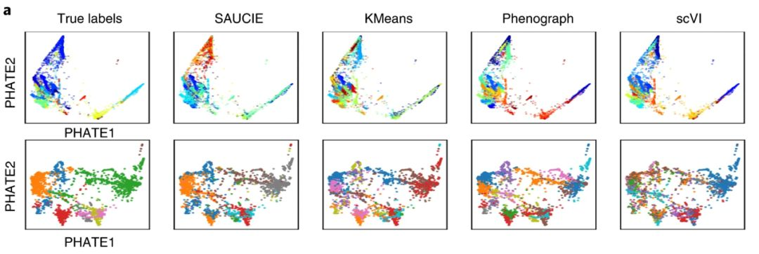 为了评估SAUCIE模型,论文在10个公开单细胞数据集上,分别是5个CyTOF数据集:the dengue dataset、T cell development data、renal cell carcinoma data、breast tumor data、iPSC data,5个scRNA-seq数据集:mouse cortex data、retinal bipolar cells、hematopoiesis data、mouse brain data、the 10x mouse megacell demonstration;执行聚类、分批处理校正、可视化、推断四个任务,并分别和对应任务的主流方法进行对比实验。