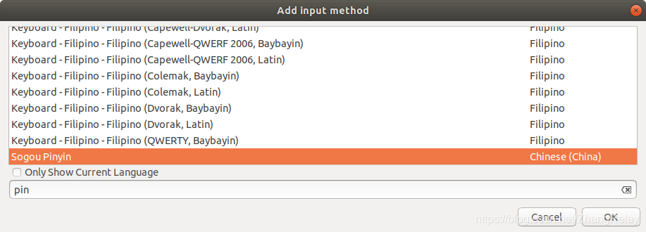 将sogou输入法添加到input method中。