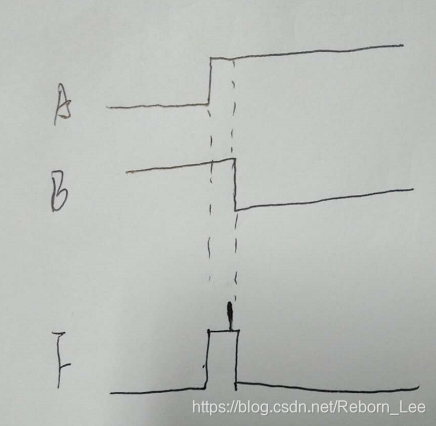 如果A和B同时由A=0、B=1变化到A= 1、B= 0,在理想的情况下输出应该一直为0,但是正是有了线延迟,出现了如下非预期险象:
