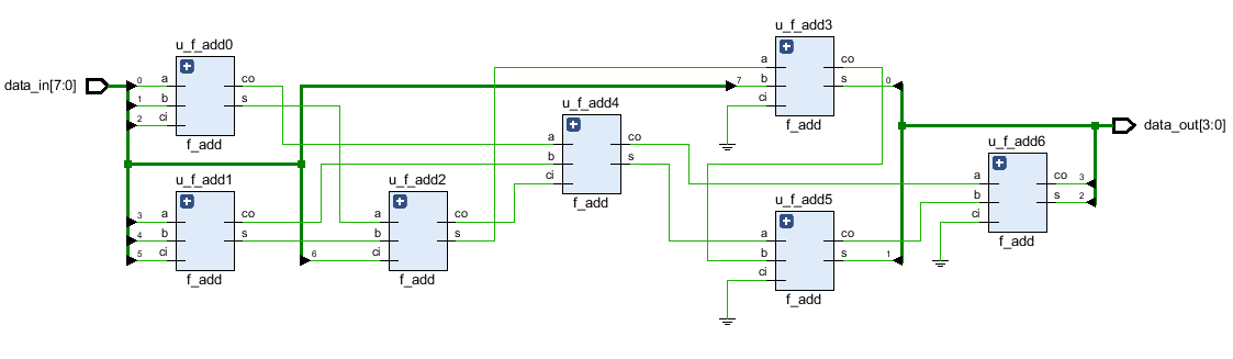 3. 输入一个8bit数,输出其中1的个数。如果只能使用1bit全加器,最少需要几个?
