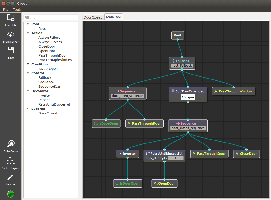 此外,您可以开始使用Groot的初步版本,即可以创建的图形用户界面。编辑,监视和重放BehaviorTrees的执行。