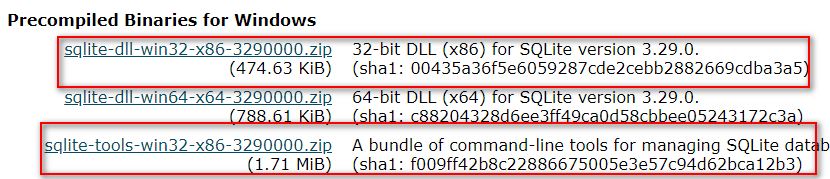 1. 访问 SQLite 下载页面,从 Windows 区下载预编译的二进制文件sqlite-tools-win32-.zip 和 sqlite-dll-win32-.zip 压缩文件。