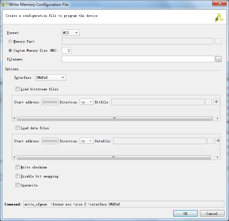 command. Supported memory configuration file formats are MCS, BIN, and HEX.