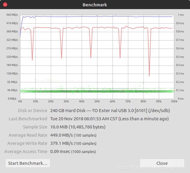 点击Disks(磁盘),打开使用,完全图形化操作。常见存储器读写速率如下: