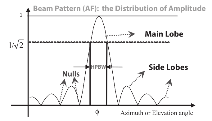 因此,HPBW也称为3 dB波束宽度。 换句话说,它是两个天线方向图点之间的角距离(方位角或仰角),其中功率变为其最大值的一半。 仰角是相对于其在xy平面上的投影来测量的。
