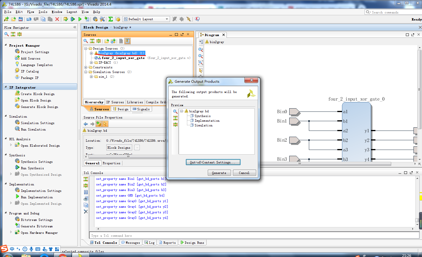 在sources界面右击bin2gray,选择Generate Output Products,如下: