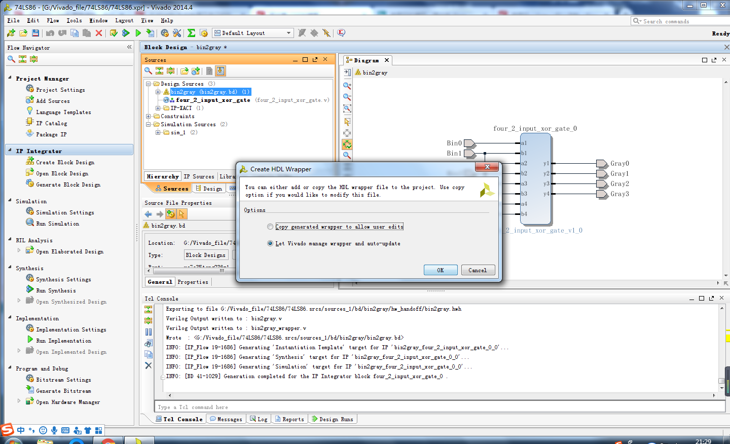 本文采用Vivado2014.4来完成一个二进制转格雷码的IP的设计与封装。