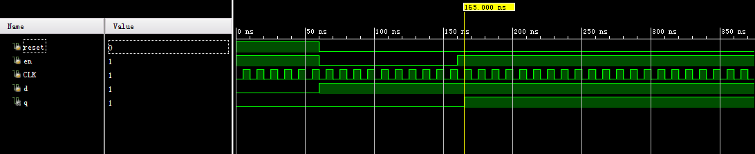module dff_reset_en_1seg( input clk, input reset, input en, input d, output reg q ); always @(posedge clk, posedge reset) begin if(reset) q <= 1'b0; else if(...