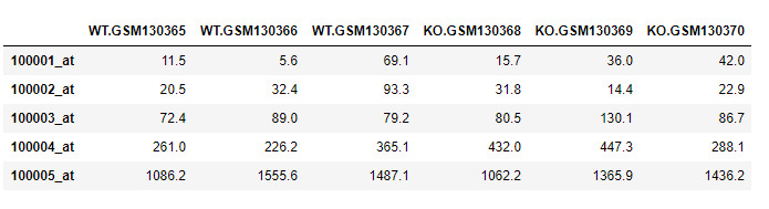 ko = data2.loc[:,'KO.GSM130368':'KO.GSM130370'].mean(axis = 1)