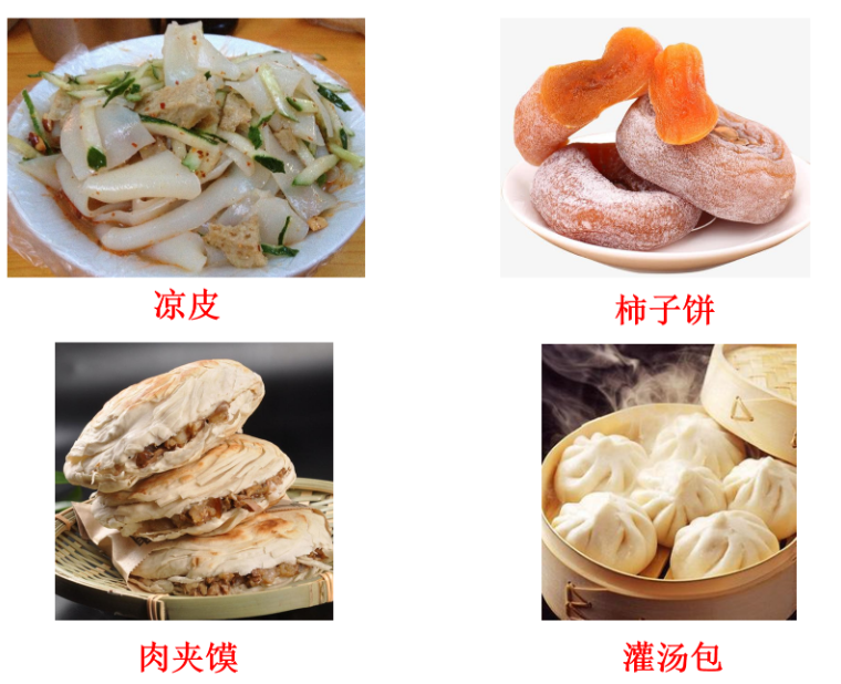 数据集共4类美食,分别是凉皮,柿子饼,肉夹馍和灌汤包。每个类别10张图片。