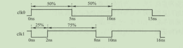 (1)clk0: period = 10, waveform = {0 5}