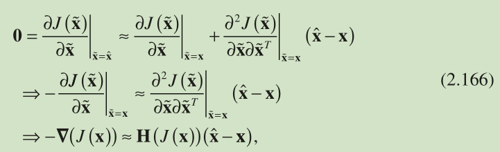 是在真实位置评估的相应Hessian矩阵和梯度向量。 当Hessian矩阵内的二阶导数在 x 周围足够平滑时,我们有[29]: