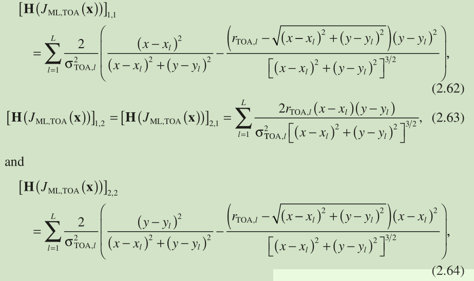 are the corresponding Hessian matrix and gradient vector evaluated at the true location. When the second- order derivatives inside the Hessian matrix are smooth enough around x , we have [29] :