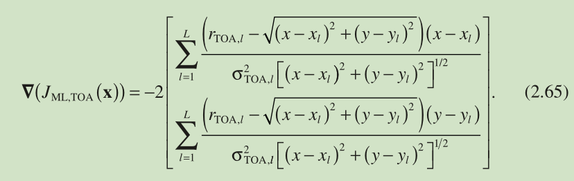 We first take the ML cost function for TOA-based positioning in Equation 2.59 , namely,