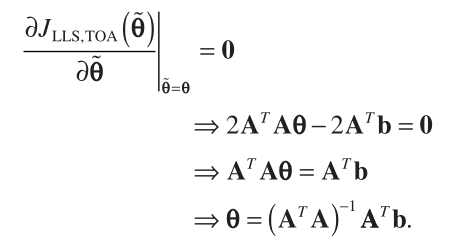 Assuming sufficiently small noise conditions and following Equations (12)——(16), a variant of the LLS method using TOA measurements is