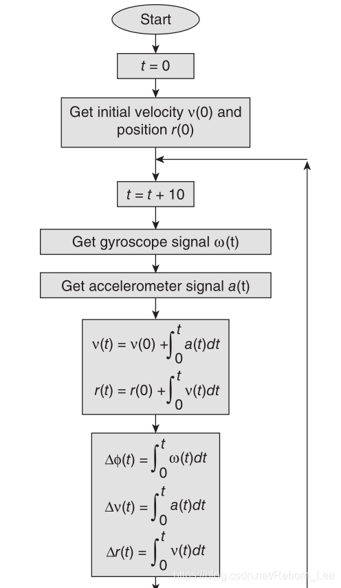 陀螺仪和加速度计是运动传感装置,分别测量旋转速度(角速度)和线性加速度[12]。 假设对于感兴趣的对象已知初始位置,速度和方向,则通过对从运动传感器接收的信息进行积分来确定更新的位置,速度和方向。 因此,物体可以连续地跟踪其位置,速度和方向,而无需外部信息。
