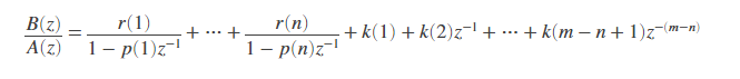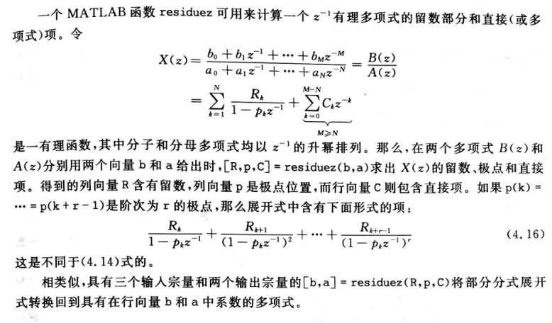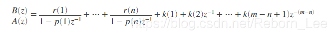 部分分式分解,如上式,我们就遇到了留数和极点问题,这时我们就用本博文介绍的函数residuez来辅助求解。
