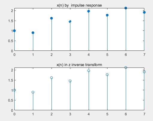 我们的思路是将X(z)方程有理传递函数,那么x(n)就相当于单位脉冲响应,如果系统输入一个单位脉冲信号,那么输出还是x(n).