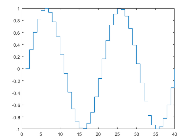 Create a stairstep plot of sine evaluated at 40 equally spaced values between 0 and.