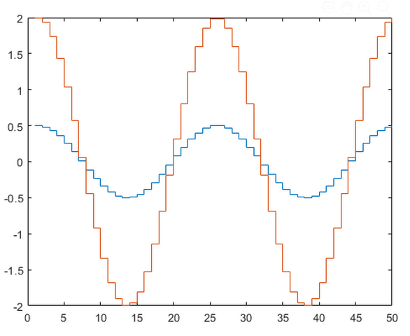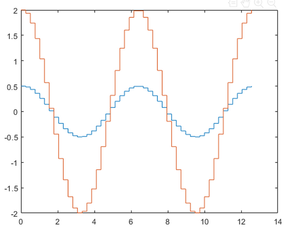 stairs(绘制成由ax指定的轴而不是当前轴(gca)。 选项ax可以在先前语法中的任何输入参数组合之前。ax,___)
