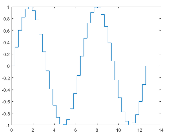 stairs( plots the elements in X,Y)Y at the locations specified by X. The inputs X and Y must be vectors or matrices of the same size. Additionally, X can be a row or column vector and Y must be a matrix with length(X) rows.