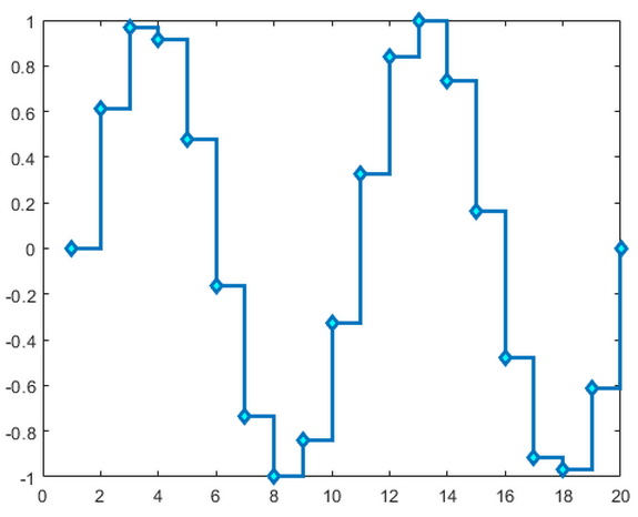 stairs(Y,'LineWidth',2,'Marker','d','MarkerFaceColor','c')