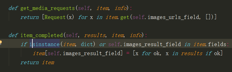 下面的代码是之前用Scrapy爬取百度图片的pipelines.py,现在我们重写了get_media_requests,和item_completed方法。