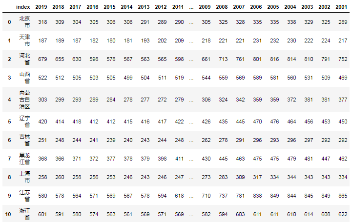 data1 = pd.read_excel('高中生数量.xlsx',index_col=0) #index_col用来设置索引列
