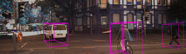上图是将 3D 边界框投影回相机图像中。