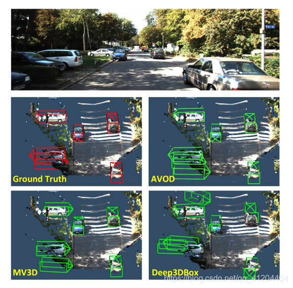 MV3D, Axis Aligned, AVOD三种不同的3D Bounding Box编码方式如下图所示,