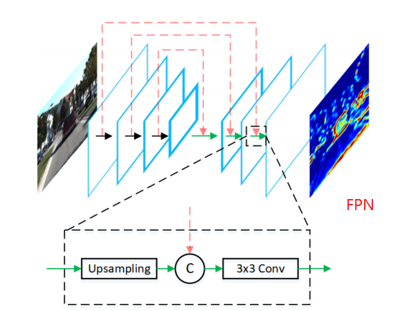 AVOD使用的是FPN,包含了encoder和decoder,它可以在保证特征图相对于输入是全分辨率的,而且还能结合底层细节信息和高层语义信息,因此能显著提高物体特别是小物体的检测效果。(对比:MV3D-Net 是使用的VGG16做特征提取。)