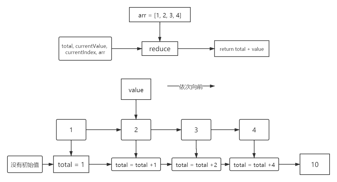 array.reduce(function(total, currentValue, currentIndex, arr), initialValue)