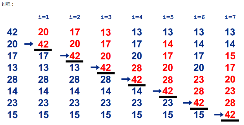 如果有N个数,我们需要大循环N - 1次,然后我们从第二个元素开始找起,当发现比前面的元素小的时候,我们就...