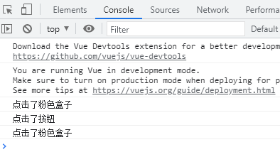 下图是添加.self后先后点击一次按钮和粉色盒子的结果
