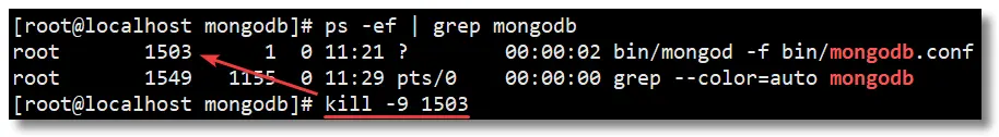 # 查看 mongodb 运行的进程信息 ps -ef | grep mongodb # kill -9 强制关闭 kill -9 pid