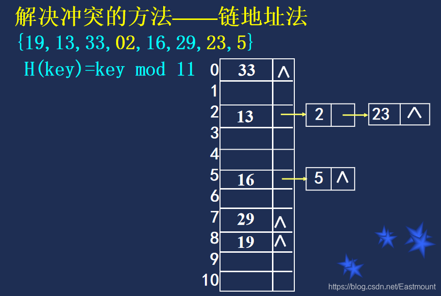 (1) 开放地址法(线性探测再散列、二次探测再散列、随机探测再散列);