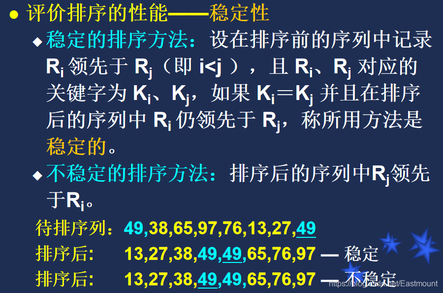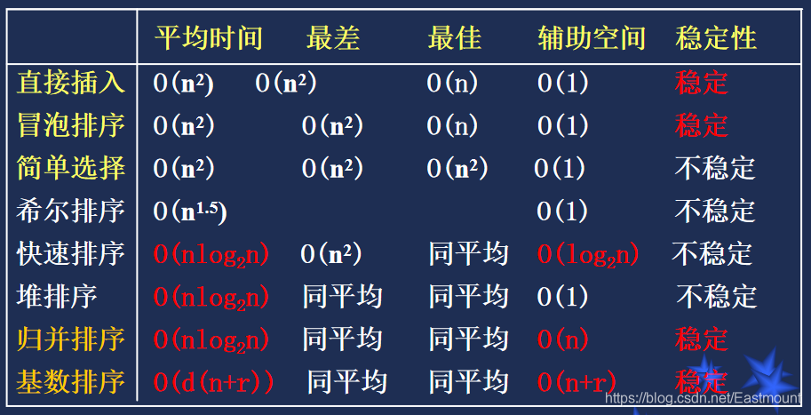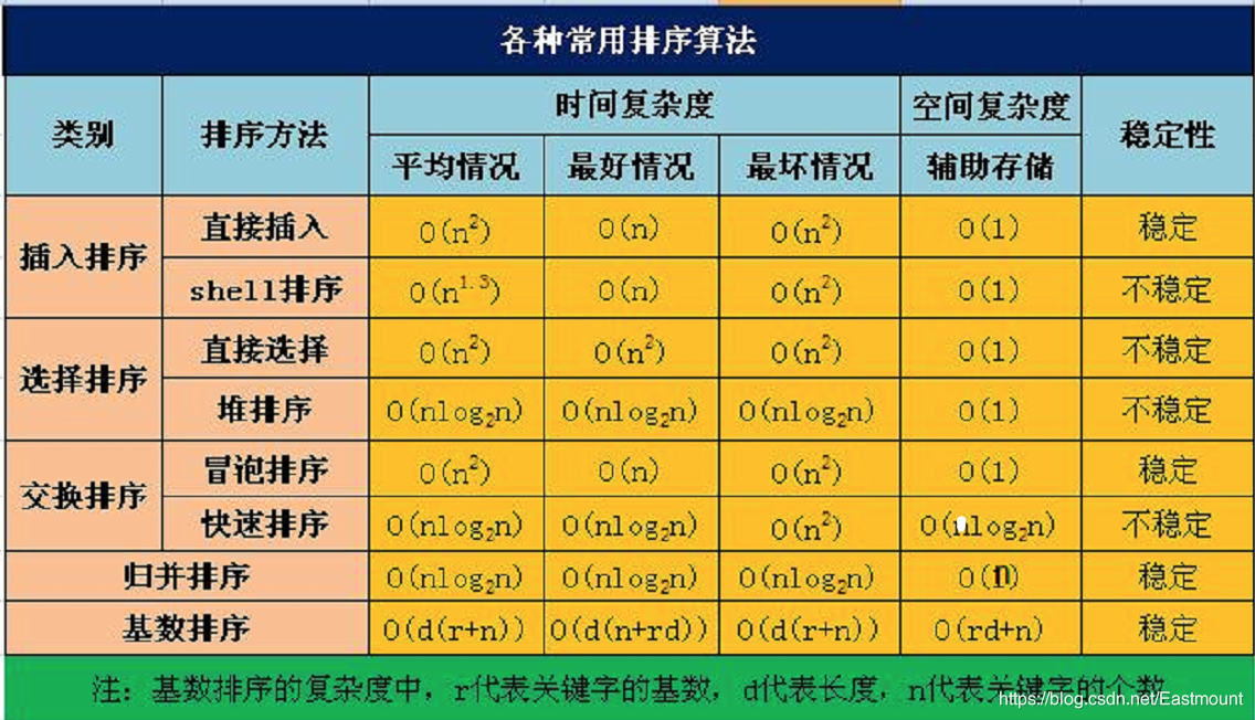 稳定排序:直接插入排序、冒泡排序、归并排序、基数排序