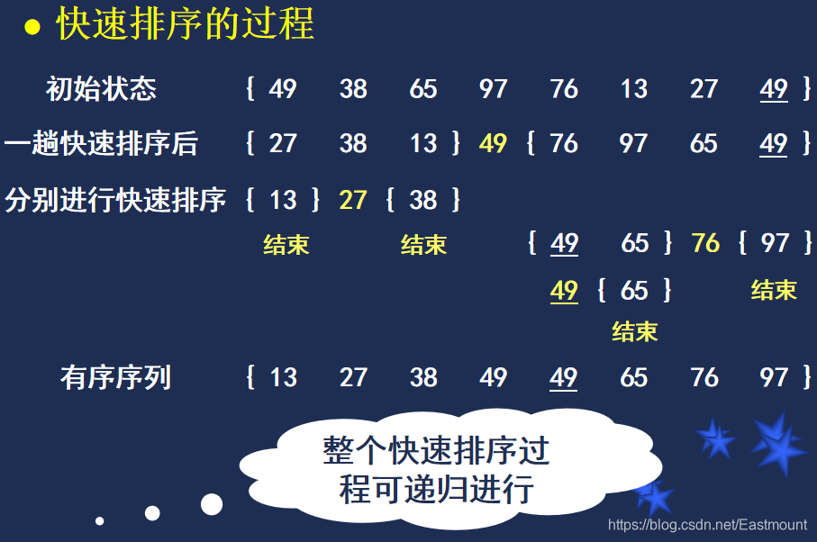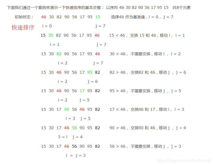 快速排序5为基准,基本规则如下:left=5,right=8,先遍历right,寻找比基准5小的数字左移;找到之后与左边left下标替换,接着left向右移动,寻找比基准5大的数字,找到之后替换,最后left=right时,该数字与基准替换。