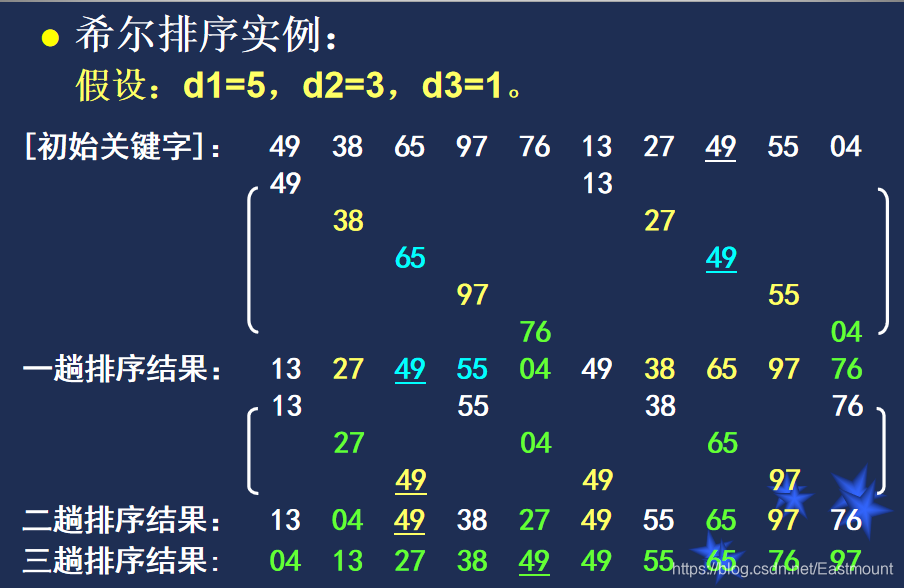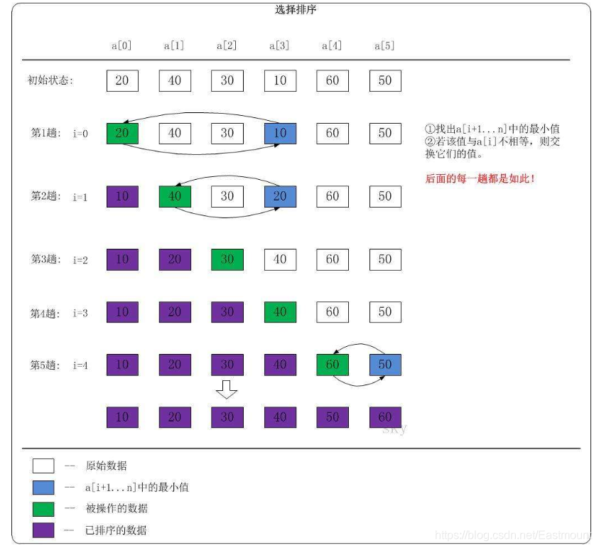 第三趟结果:寻找第三个最小值并与第三个位置交换顺序