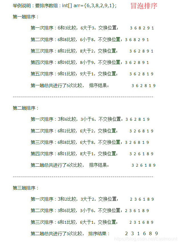 核心思想:两两比较,交换顺序,每次能在最后一个位置获得最大值或最小值