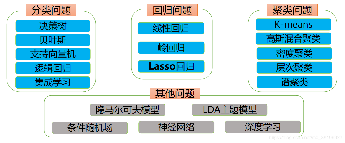 - 若样本和其归属的类别信息并不完全,则训练过程称为半监督(Semi-Supervised)训练,例如只有部分样本有明确的类标签,或仅已知样本可能得归属的几种类信息,但尚未确定每个样本的类别归属等。