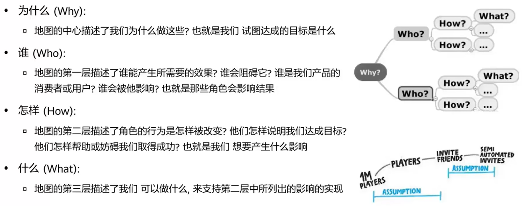 - 使用可视化的方法,建立商业目标与产品功能的联系,并将联系背后的假设可视化出来