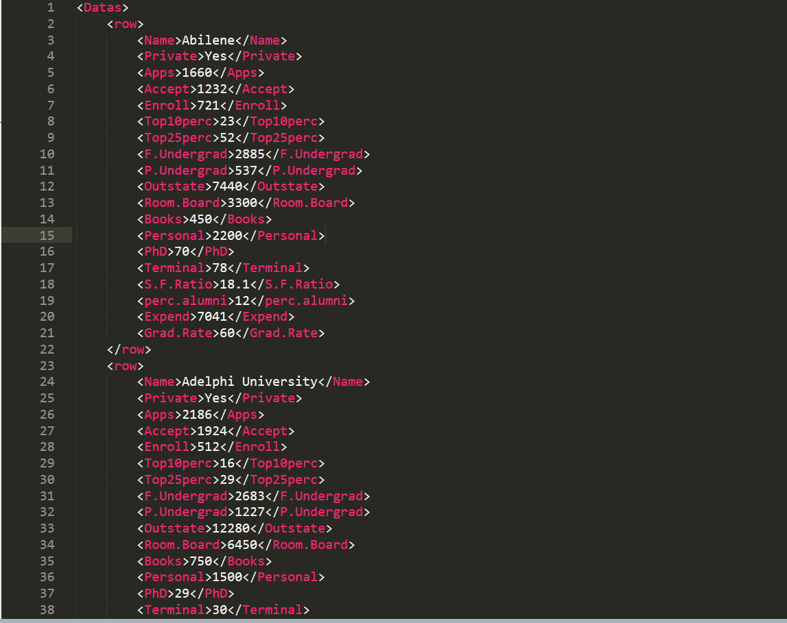 def csv_to_xml(file_name): print(file_name) with open(file_name, 'r', encoding='utf-8') as f: # 读取csv文件 reader = csv.reader(f) header = next(reader) # 跳过表头 root = Element('Datas') print('root', len(root)) # 处理转换 for row in reader: erow = Element('row') root.append(erow) for tag, text in zip(header, row): e = Element(tag) e.text = text erow.append(e) beatau(root) return ElementTree(root)