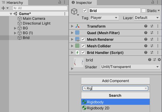 创建脚本BridHandler 挂载到Brid上,内容编辑如下: