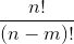 - 无放回的抽取,抽取 m 个排成一列,求不同排列总数: