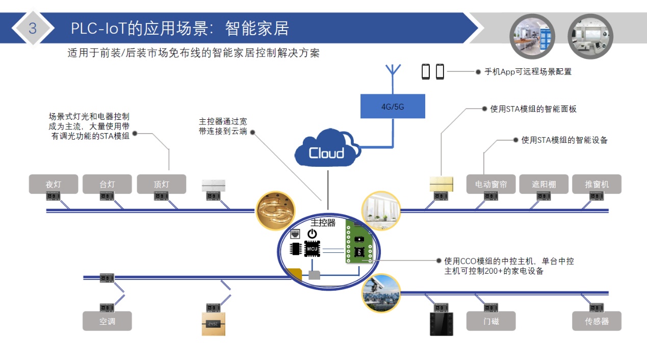 近期 全屋智能 的 话题 很火 , 也 让很多企业和开发者的目光投向了 PLC 领域 。 PLC 即电力载波通讯,是 Power L ine Communication 的简称。 PLC 利用家庭 火线和零线,就能实现 用电 设备 (插座 、 灯 、 冰箱 等 )的 互联互通。 PLC 优势巨大: 超 便携, 有电 即 能用,便携施工, 简化 运维 ; 超智能,自动的无感知 自组网 ;超长 传输 距离;超安全,简单经济的强电隔离; 超低成本。 贴 几个图,大家感受下。 【答 开发者 】 C CO 是 PLC 头端 模组 。 S TA 是 PLC 尾端 模组 。