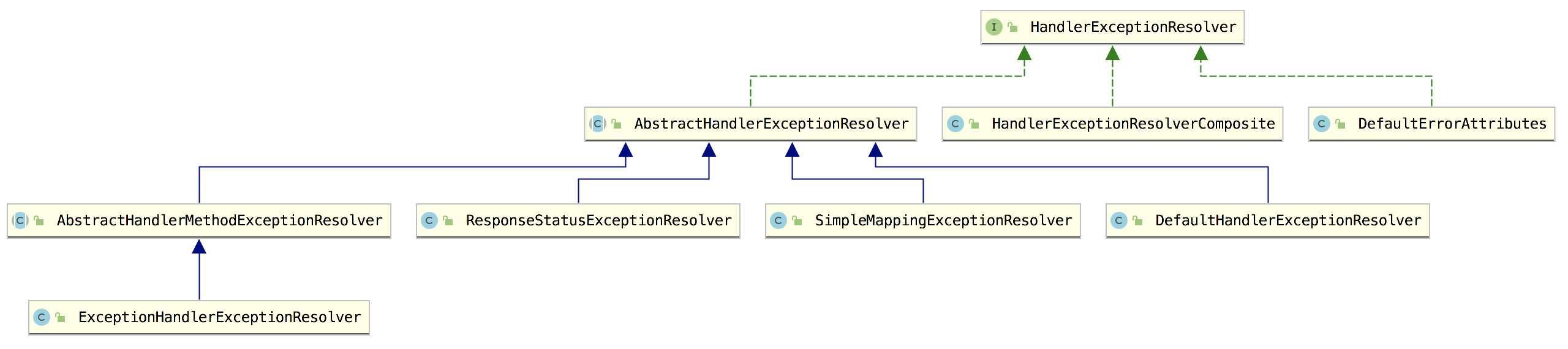 我们来看下 HandlerExceptionResolver 的实现类: